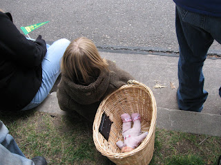 So, yesterday, before all the snow, we went to a parade - I brought a big basket to put all the candy in. Unfortunately, just after this picture, I threw a very sizable fit and had a series of timeouts. While I was gone (for 30+ minutes with Papa), Mommy took these pictures of what I missed and was nice enough to grab me some candy. Wow! What a nice Mom and Papa I have, even when I act so badly!