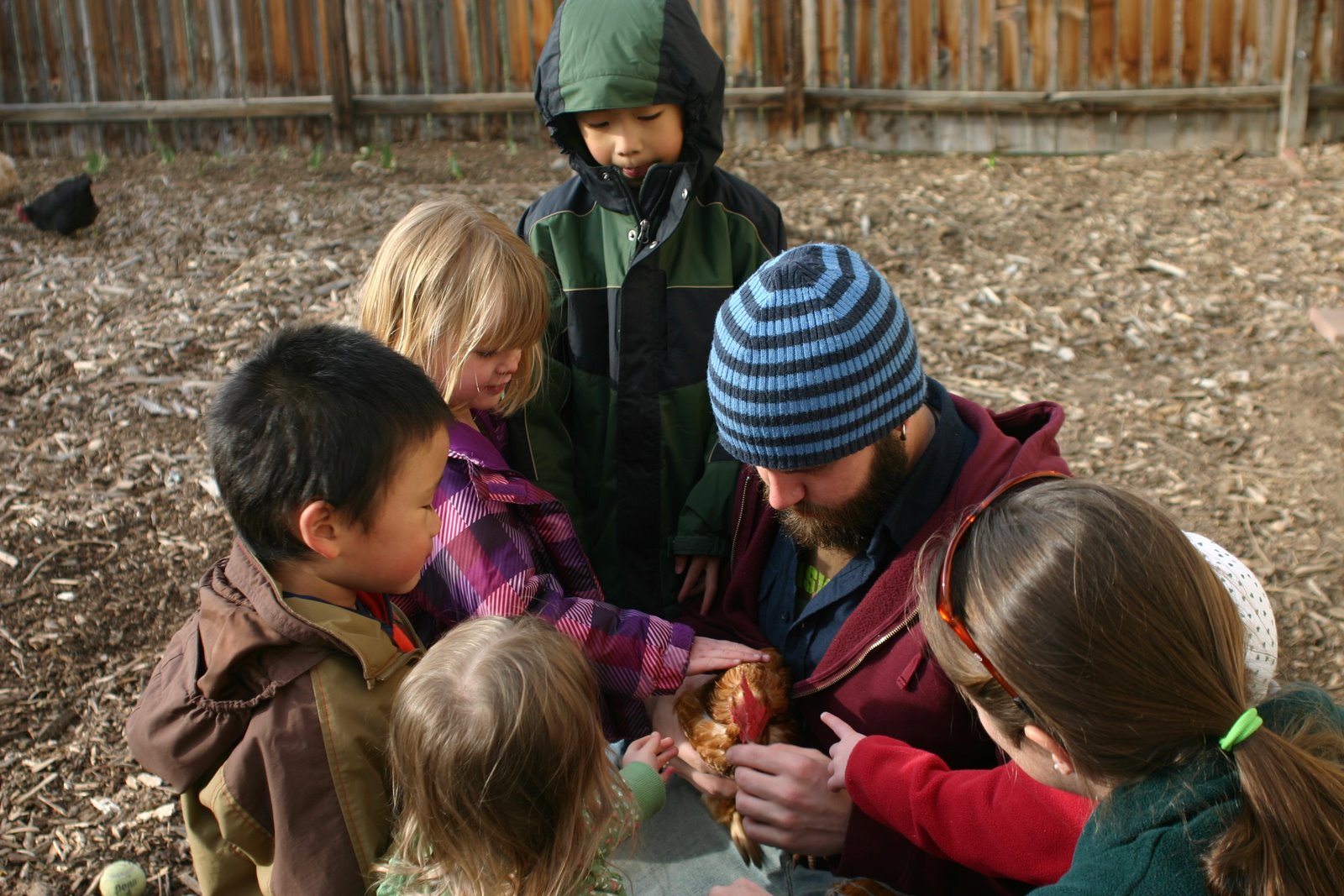 Petting chickens