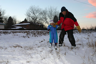 Grandpa Bruce made me some skis and gave me my first lesson.