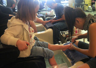 Here are some pictures from Tessa's birthday pedicure. Notice Lehne and BJ in the background