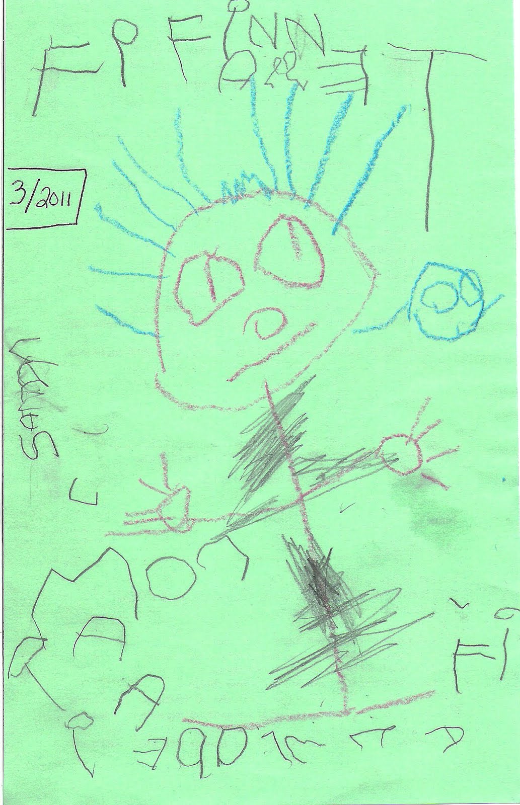 Her letters are coming along well, if you know what to look for, you can read: Finn, Tessa, Mom, Papa, Sam and Eddy