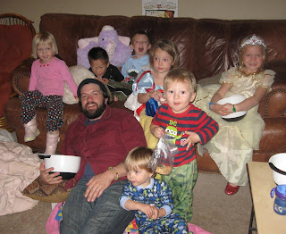 We recently hosted a drop-off at our house for our babysitting co-op. 8 kids for 4 hours! Whew!