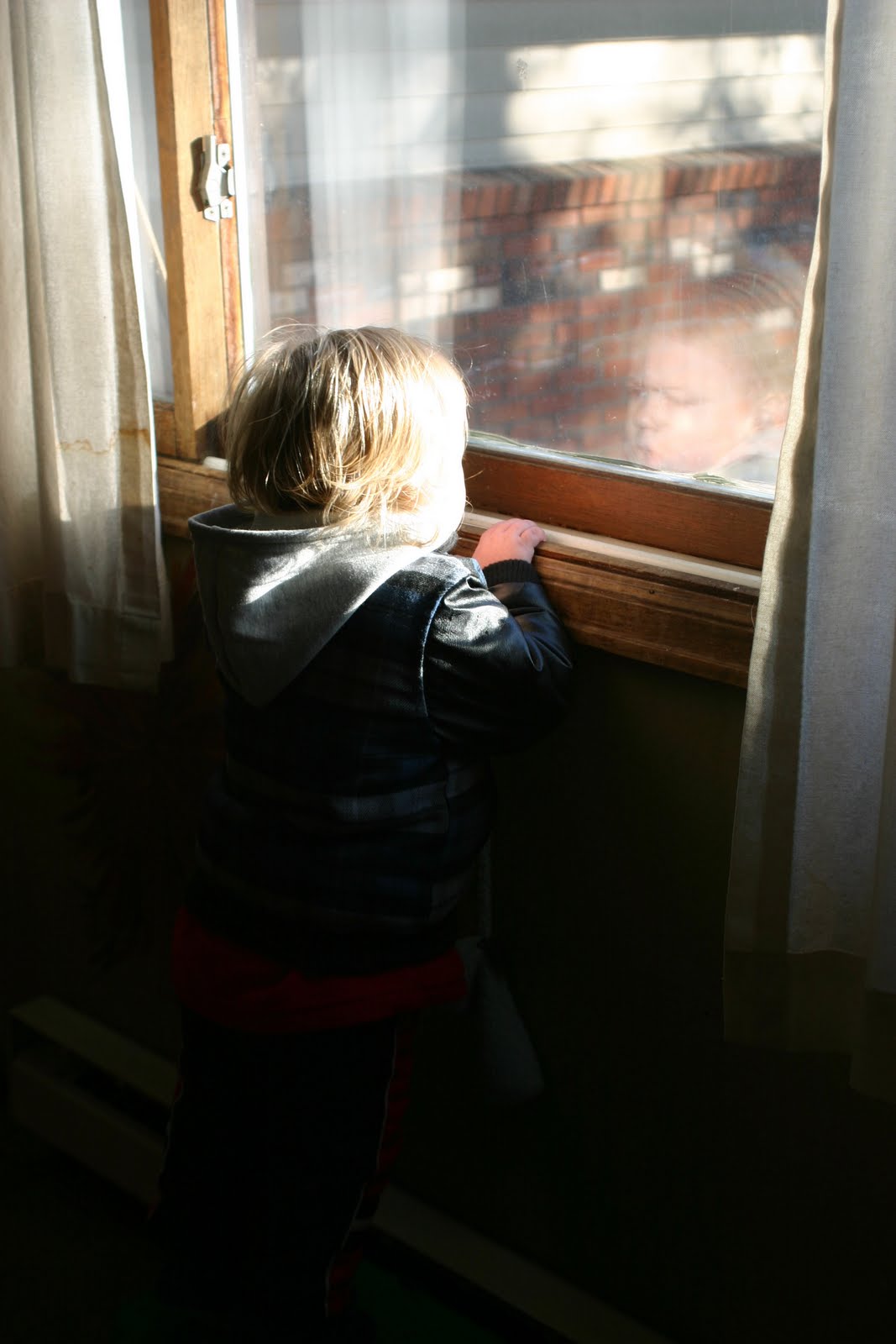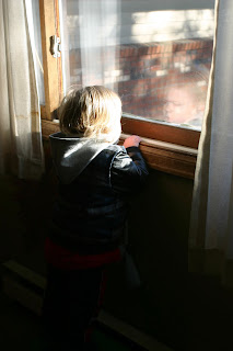 Finn watching all the big trucks