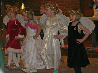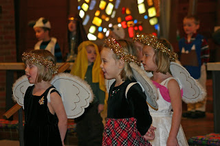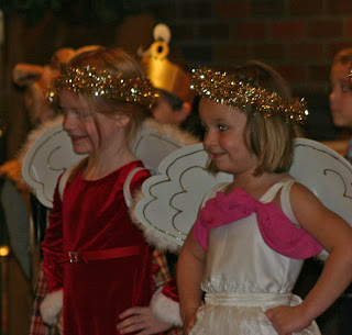 Tessa was an angel in the angel choir, and even though her wings were up-side-down, she did great!
